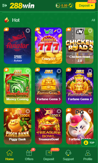 The concept behind 288 Win Game is simple. Players deposit money into their accounts, select games available on the platform, and try their luck or skills to earn returns. The app usually includes different categories of games such as color prediction, slot-style games, number games, and other quick-result formats.