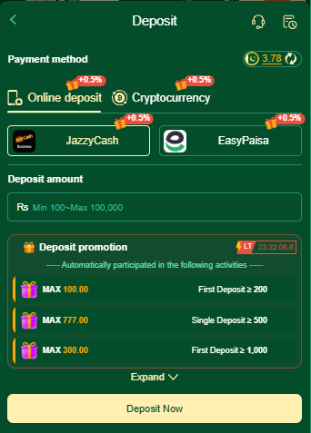 The platform also includes a secure deposit and withdrawal system, making it easy for Pakistani users to receive winnings directly in their local accounts or wallets. Overall, it is a modern, easy-to-use casino app that brings excitement and income together.