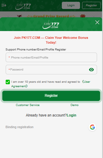 How to Register on PK177 Game