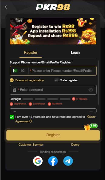 How to Register or Download PKR 98 Slots Game?