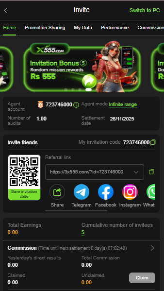 - Variety of Earning Games: Beyond classic casino games, X555 includes unique quick-earning options designed for fast rewards.